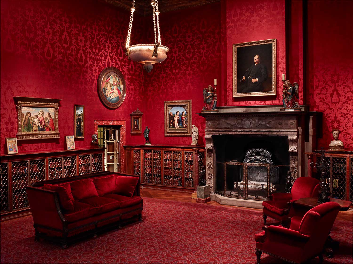 Covered in red velvet, the walls have a royal hue. Morgan made sure that the desk and couch were designed in an exquisite British style, as his life was often connected to England. The collector adorned his study with personal collections of paintings and sculptures. However, the most mysterious part of the room is the vault, which is used to house Morgan’s rarest and most treasurable manuscripts.